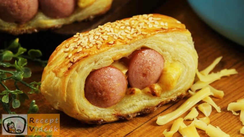 Palacsinta tésztába göngyölt sajtos baconos virsli